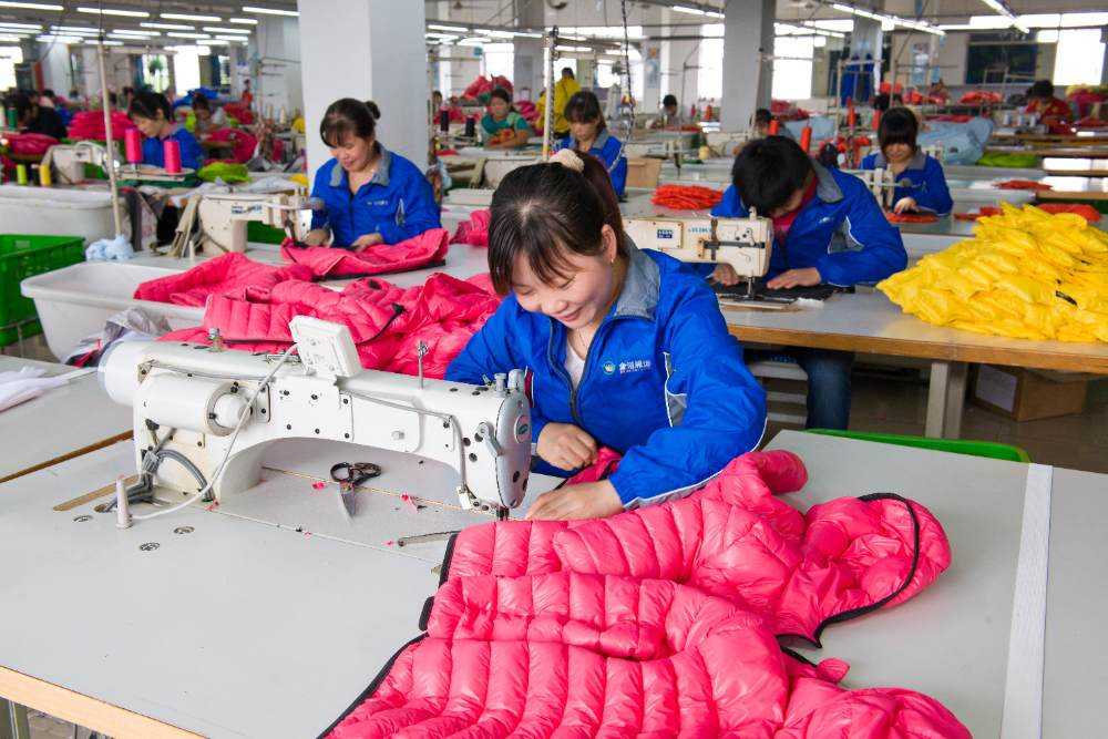 缝纫是将裁剪好的面料片通过缝纫机缝合成羽绒服的各个部件,如袖子、领子等。缝纫过程中需要保证缝线的整齐和牢固,以确保羽绒服的耐用性。