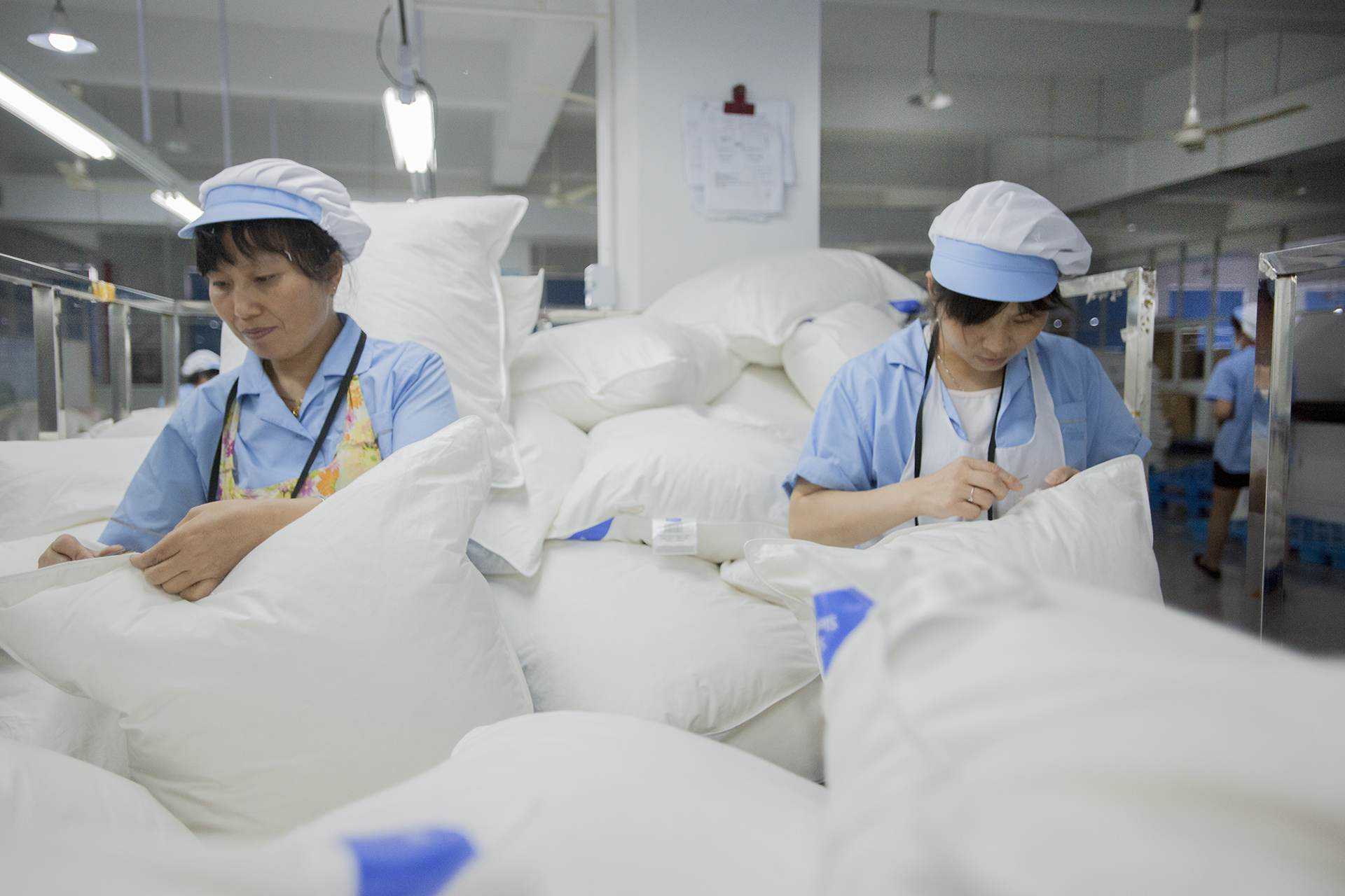 充绒是将羽绒填充到羽绒服的各个部分,这一步骤对羽绒服的保暖性能至关重要。充绒时需要控制好羽绒的分布,确保每部分的保暖效果均匀。
